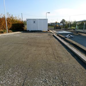 Zpevněná skladovací plocha z asfaltového povrchu. Součástí stavby bylo vybudování přístřešku pro kontejnery, parkovacích ploch, areálové komunikace a dodání silniční váhy.