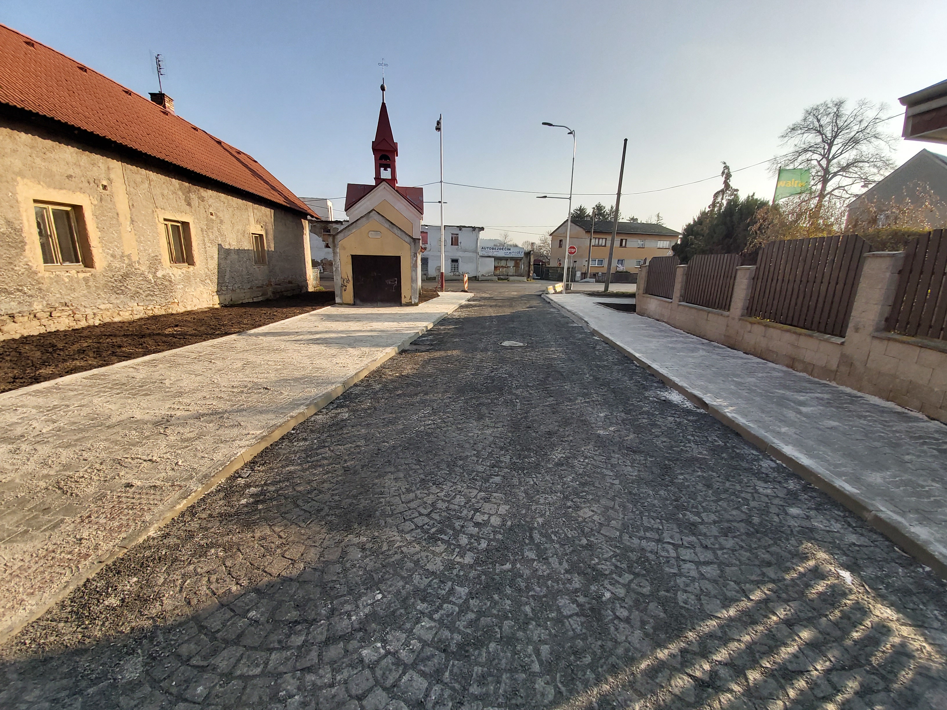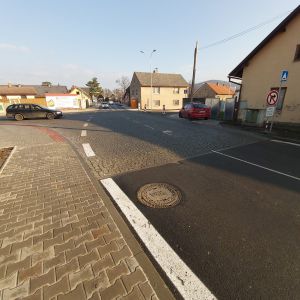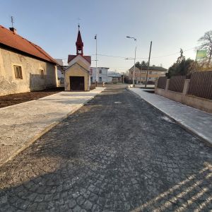 Rekonstrukce komunikace pro automobilovou dopravu včetně křižovatky, veřejného osvětlení, vybudování komunikace pro pěší, vjezdů k nemovitostem, autobusové zastávky z kasselských obrubníků. Povrchy byly zhotoveny z kamenné dlažby, zámkové dlažby a asfaltového betonu. Dopravní značení bylo částečně provedeno barevně odlišnými dlažebními kostkami
