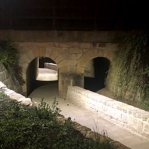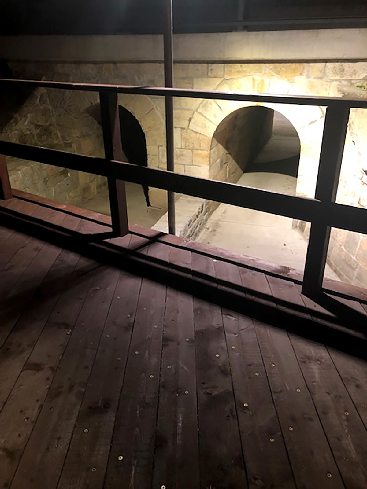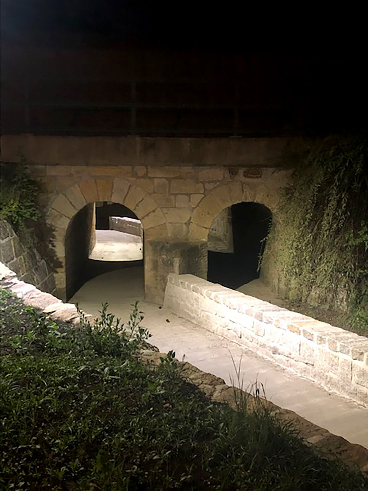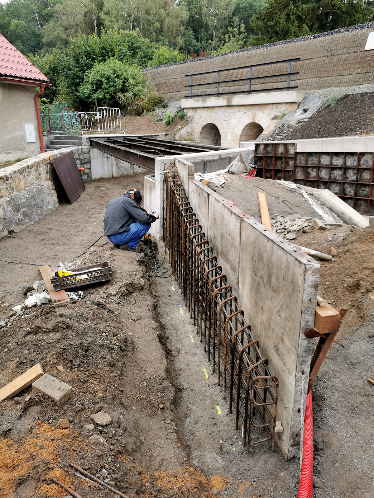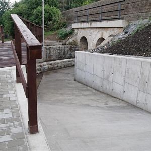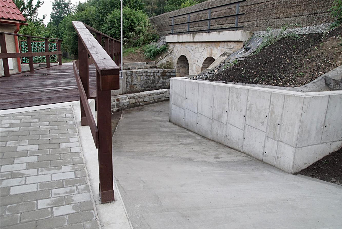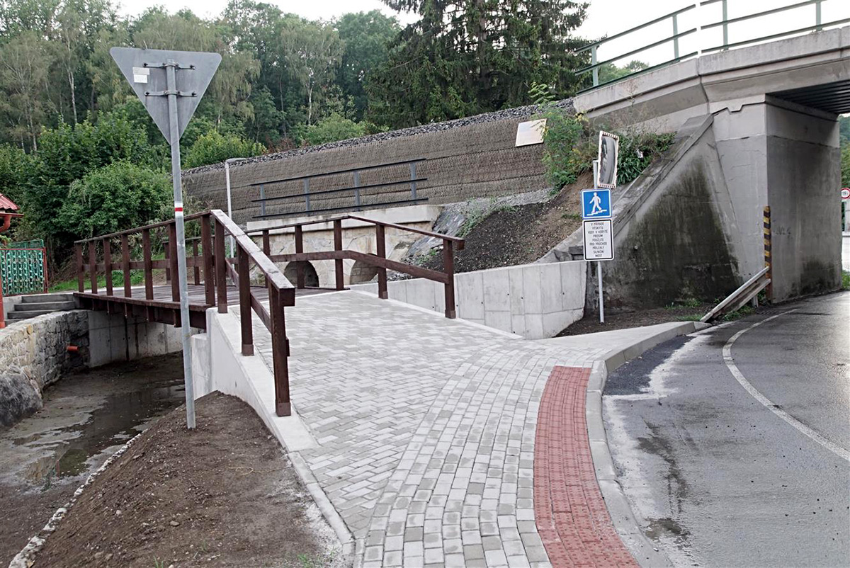 V rámci navrhovaných úprav byl pěší provoz převeden pod železniční trať skrz propustek. Byla provedena úprava a napojení ocelodřevěného mostku a chodníku, zárubní a opěrné zdi, železobetonové rampy a dělící zídky z lomového kamene. Součástí stavby bylo odbourání opěr silničního mostku, výkopy pro rampy a dělící zídky, odstranění nánosů v korytě a v profilu propustku, úprava tvaru nábřežních zídek. Dále odvodnění, IS a veřejné osvětlení