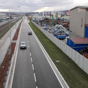V rámci sdružení s partnery COLAS CZ a.s. a Metrostav a.s., jsme realizovali výstavbu severovýchodní tangenty, jako místní komunikace v kategorii MS4d 28,3/19,0/50 v místě čtyřpruhové komunikace a v místě dvoupruhové komunikace v kategorii MS2a 14,3/8,5/50. Je to komunikace, která lépe zpřístupňuje centrum města a zároveň odlehčuje dnes velmi zatěžovaným komunikacím jako je ulice Jičínská, T. G. Masaryka a tř. V. Klementa. Tuto dopravu odvede do prostoru výhodnějšího z hlediska vlivu na životní prostředí města (prostor podél trati ČD mezi novým a starým závodem Škoda). Umožnila připojení autobusového nádraží, a v budoucnu i parkoviště u 6. brány Škoda, obytných domů u Dukelské ul. a tím odvedení dopravy z a do těchto míst mimo centrum města. Dále bezpečněji a rychleji propojila sídliště v severozápadní části města ve směru na rychlostní silnici R10 a k nákupním centrům. V oblasti obchodních center byla vybudována v místě křížení kruhová křižovatka.