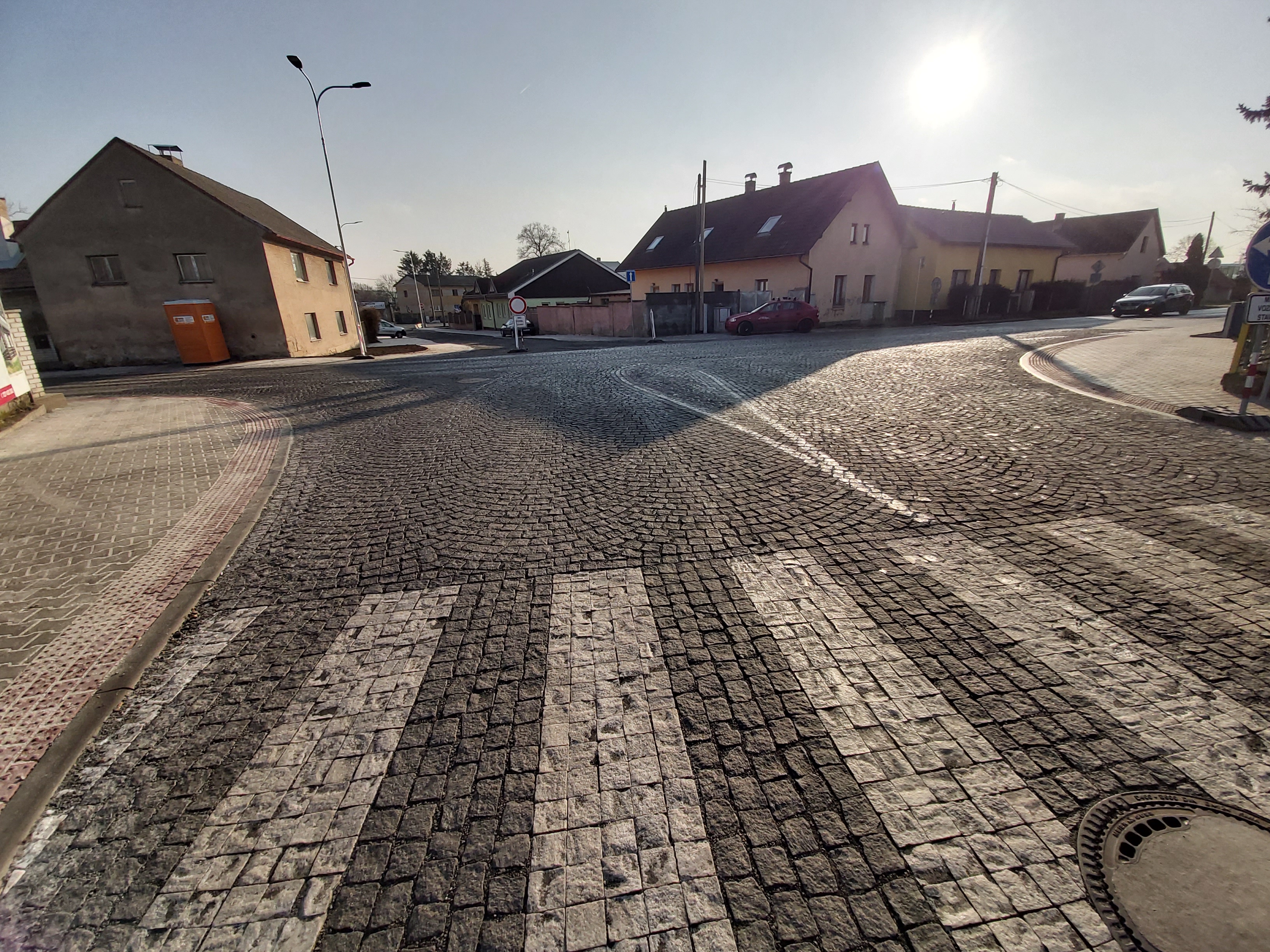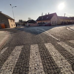 Rekonstrukce komunikace pro automobilovou dopravu včetně křižovatky, veřejného osvětlení, vybudování komunikace pro pěší, vjezdů k nemovitostem, autobusové zastávky z kasselských obrubníků. Povrchy byly zhotoveny z kamenné dlažby, zámkové dlažby a asfaltového betonu. Dopravní značení bylo částečně provedeno barevně odlišnými dlažebními kostkami