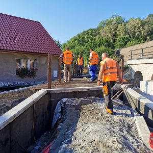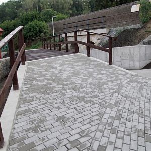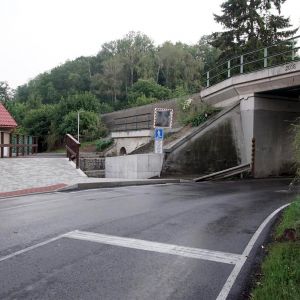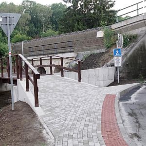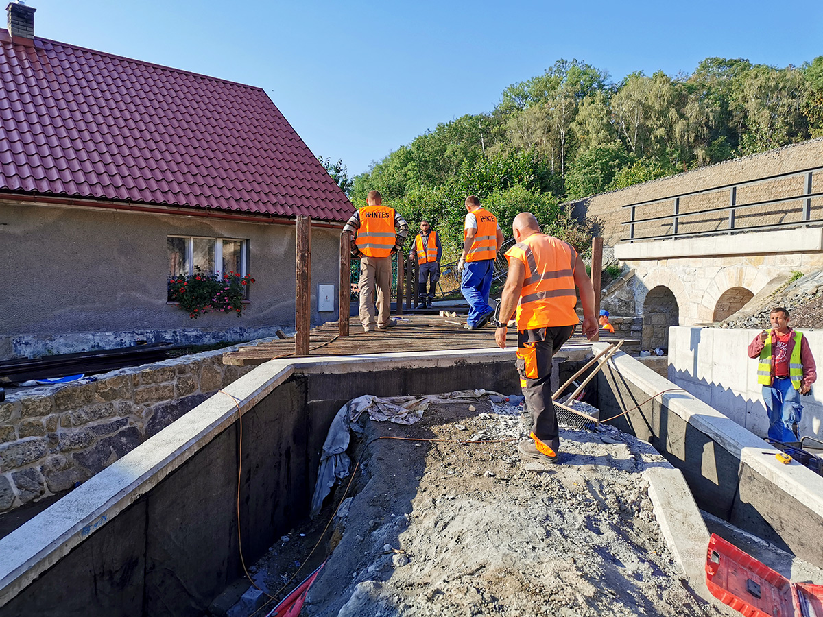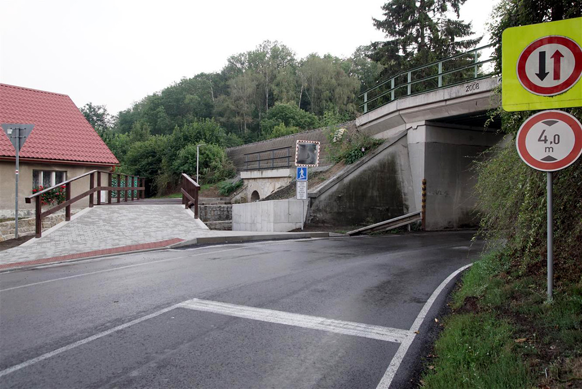 V rámci navrhovaných úprav byl pěší provoz převeden pod železniční trať skrz propustek. Byla provedena úprava a napojení ocelodřevěného mostku a chodníku, zárubní a opěrné zdi, železobetonové rampy a dělící zídky z lomového kamene. Součástí stavby bylo odbourání opěr silničního mostku, výkopy pro rampy a dělící zídky, odstranění nánosů v korytě a v profilu propustku, úprava tvaru nábřežních zídek. Dále odvodnění, IS a veřejné osvětlení