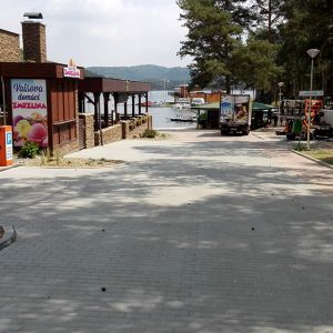 Úprava a revitalizace stávajícího pobřeží u Máchova jezera v obci Staré Splavy, v CHKO Kokořínsko – Máchův kraj. Součástí stavebních prací bylo mimo jiné bourání betonových ploch (vozovky, mola), včetně konstrukčních vrstev. Výstavba vozovky a chodníků ze zámkové dlažby; opěrných zdí; veřejné osvětlení; venkovní rozvody kanalizace a vodovodu, odvodnění.
